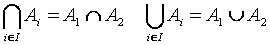 Dla dowolnej rodziny podzbiorów {Ai : i ∈ I} zbioru U, zachodzą równości